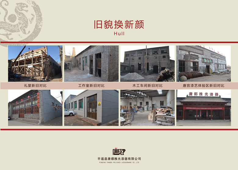 平遙唐都推光漆器是平遙煤化(煤化)公司轉型項目,于2011年12月創建公司,注冊資金2000萬,投資1.23億元,建筑面積近4萬平方米,是一家集“生產銷售、展覽收藏、研發設計、旅游觀光、創業孵化、跨界融合、漆樹種植”于一體的綜合型公司,公司主要產品有古典現代推光漆器家具、柜、幾、床、桌、凳、屏風、漆畫、首飾匣等文化禮品和旅游紀念品,具有實用、收藏、文化、藝術價值。產品銷往國內外18個國家和地區,屢獲全國博覽會金銀獎,通過了IS09001質量體系認證,取得了自營出口權,被中國工藝美術協會授予“中國推光漆器博物館”和以唐都為龍頭的“中國推光漆藝之都”、“國禮生產指定廠家”、“CCTV央視網商城優選品牌”、國家文化產業示范基地,山西省眾創空間。公司現有國家級、省級工藝美術大師及專業設計制作團隊186人,技術力量雄厚,秉承質量第一、服務誠信,經營上門測量、免費設計、終身保修,歡迎選購定制。